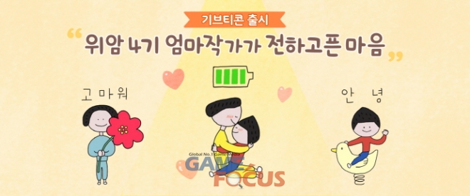 이달 10번째로 출시한 새로운 기브티콘은 일러스트레이터, 그림책 작가 등으로 활동중인 윤지회 작가의 ‘엄마와 반지’다. 생존율 7%에 불과한 위암4기로 투병중인 윤 작가는 SNS에서 글과 그림으로 엮어낸 투병 일기 ‘사기병’을 연재중이다. 특히 수술과 회복, 고통스러운 항암치료 과정들을 희망적이고 유쾌하게 풀어내 많은 응원과 관심을 받고 있다. 이번 기브티콘 역시 밝고 긍정적인 메시지와 경쾌하고 따뜻한 색채감을 24종의 이모티콘에 담아냈다.