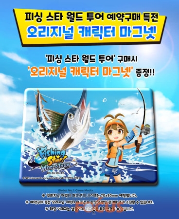 '피싱 스타 월드 투어'의 예약 판매는 오프라인/온라인의 각 게임 쇼핑몰을 통해 3월 24일(화)까지 이뤄진다. 예약 구매 시에는 대어를 낚는 모습의 메인 일러스트를 담은 '오리지널 캐릭터 마그넷' 을 특전으로 받을 수 있다.