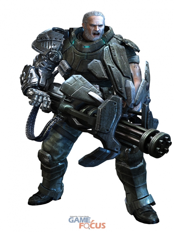 세 번의 전쟁에서 수훈을 두 번 한 영웅적인 존재. 이번 콜로니 탈환 작전에서 현장 총지휘관을 담당한다. 목적을 위해서라면 수단을 가리지 않는 남자이며, 이러한 비정함 때문에 샘과 충돌이 잦다. 그러나 한쪽 팔을 잃고 몸의 절반이 사이보그가 되어도 싸움을 계속하는 이유는 죽은 전우들을 기리기 위한 것.