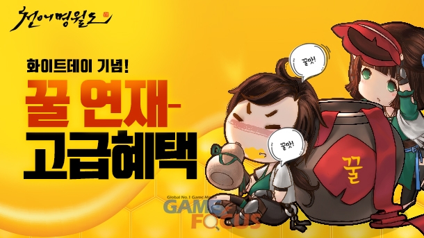 '천애명월도'에서는 3월 22일까지 게임 누적 접속 시간에 따라 '연재-고급', '꽃토끼 허리장식(영구)', '상급 장비 옵션 변경권' 등 보상을 제공하는 '화이트데이 꿀연재 고급혜택' 이벤트를 진행한다. 또, 3월 31일까지 '천애명월도' 홈페이지 내 웹샵에서는 지난 '2020 신상 코스튬' GM투표에서 최다 득표한 '부광-겨울숲(고양이춤 동작 포함)' 세트와 '성수-벽낙' 세트를 판매한다.
