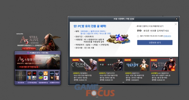 또한 PC방 이용자 100만명 이상이 가입한 PC방 O2O 어플리케이션 '피카플레이'를 통해서도 'A3: 스틸얼라이브' 모바일게임 특별아이템을 받을 수 있다.
