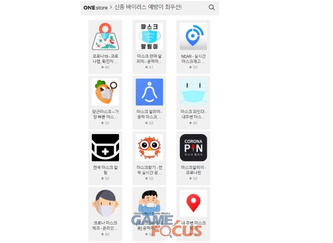 현재 원스토어 앱의 코로나19 관련 섹션에 접속하면 ‘코로나맵-코로나알리미’, ‘코백-코로나100m 알리미’와 같은 예방 앱과 ‘똑닥’, ‘마스크 알리미’와 같이 마스크 정보 앱을 한눈에 모아볼 수 있다. 또한 행정안전부 ‘안전디딤돌’, 경상남도 도청에서 자체 개발한 ‘코로나19 경남’ 등 정부 및 지자체에서 제공하는 정보 앱까지 확인이 가능하다.