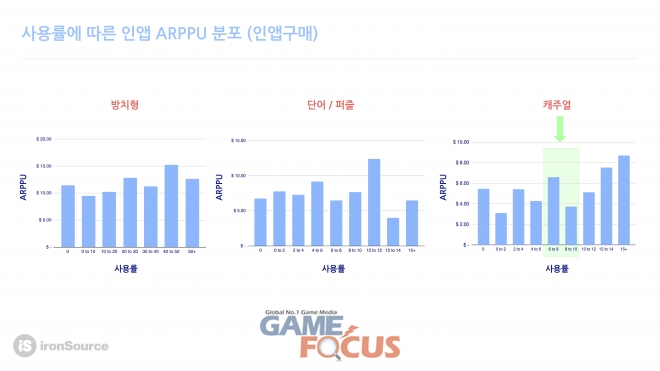 ARPPU는 게임 유저가 유료로 전환된 후 앱 내 결제 활동 시 발생하는 수익으로 사용률과 비례한다.