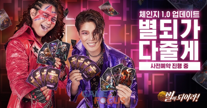 한편, 이번 '별이되어라!' 업데이트는 유쾌함이 넘치는 대세 듀오 '노라조(Norazo)'를 발탁, 강렬한 홍보 영상을 선보이며 화제성을 더하고 있다. 홍보 영상에서는 노라조의 '담배가게 아가씨' 노래의 신나는 리듬에 맞춰 다 주는 업데이트 기념 보상 콘셉트를 임팩트 있게 표현했다. 게임빌은 노라조와의 협업을 통해 더욱 업그레이드 된 게임성을 유저들에게 유쾌하게 전달할 계획이다. '별이되어라!'의 노라조 홍보 영상은 TV, 유튜브 등 다양한 채널을 통해 만나볼 수 있다.