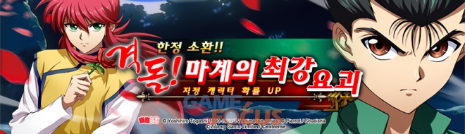 가장 먼저 '유유백서'의 메인 캐릭터 우라메시 유스케와 쿠라마를 획득할 수 있는 확률 상승 배너가 업데이트된다. 원작 주인공이기도 한 유스케는 주력기이자 유스케의 상징이라고 할 수 있는 영환 스킬을 랑그릿사에서도 그대로 사용해볼 수 있다. 특히나 유스케 같은 경우에는 공격과 방어 모두 우수한 모습을 보여주어 선행 서버 유저들에겐 없어서는 안 될 영웅으로 자리 잡고 있다.