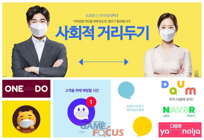 카카오, 네이버 등 대기업 포털 메신저 서비스에 이어 채널톡, 네이트온, 원두 등의 기업들도 사회적 거리두기 실천 로고를 속속 선보이며 코로나19 대응에 힘을 보태고 있다.