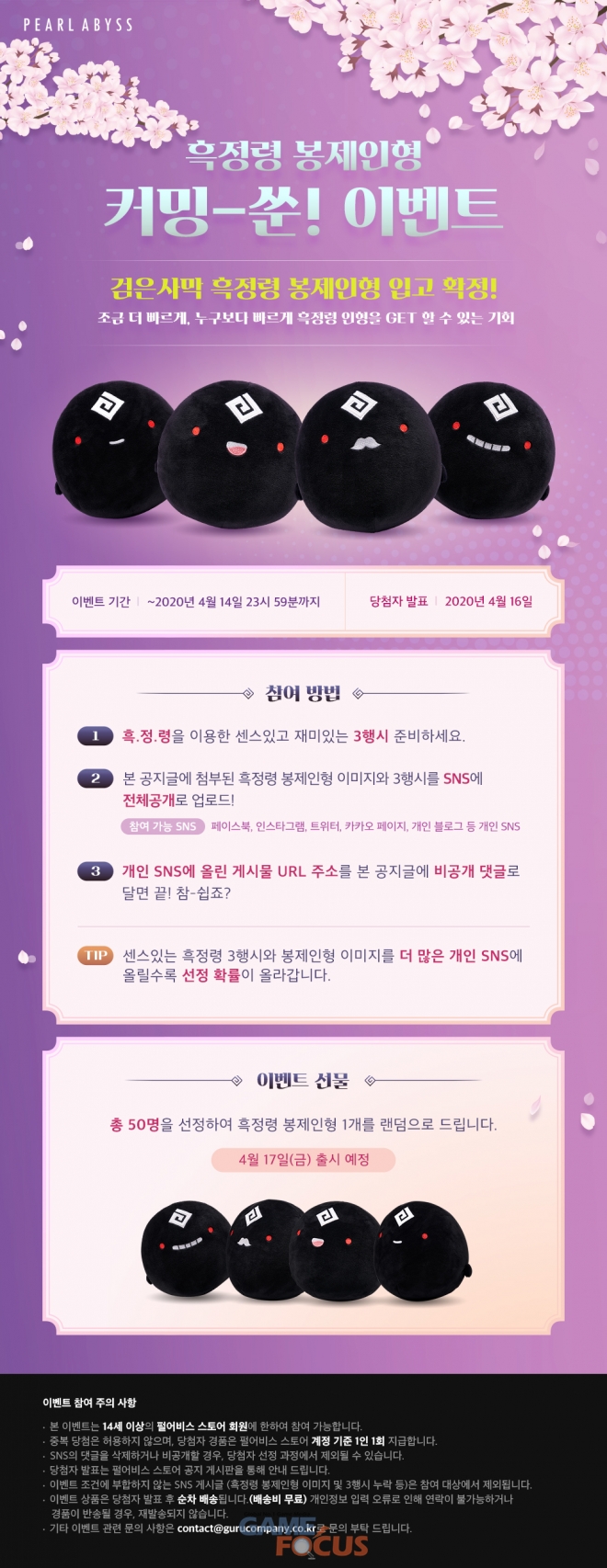 펄어비스, 온라인몰 '펄어비스 스토어' 흑정령 봉제인형 출시 기념 이벤트 실시