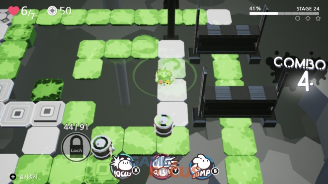 단, 무사히 목적지에 도달하더라도 스테이지 안에 일정 면적 이상을 색으로 채우지 못하면 클리어 되지 않기에 “한 붓 그리기” 처럼 신중함을 발휘해야 할 필요성이 있다.