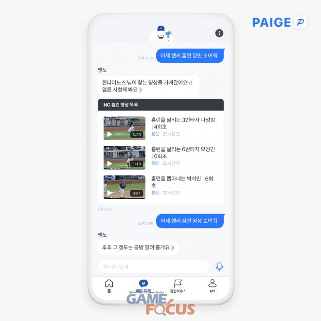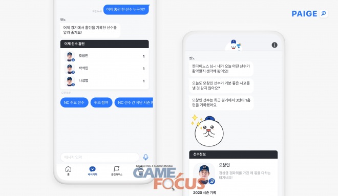엔씨(NC)는 '페이지' 시즌3를 통해 AI가 생성하는 다양한 하이라이트 콘텐츠, AI와 대화하는 페이지톡(PAIGE Talk), AI가 분석한 투수/타자 대결 정보 등을 업데이트했다.