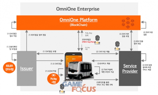 FIDO 생체인증과 DID 기술이 적용된 ‘옴니원’은 자율주행 서비스가 시작되는 지점인 이용자와 자율주행 차량에 대한 인증을 제공한다. 중앙 서버나 관제 센터를 통한 단일 인증이 아닌 자율주행 구성 요소들간의 통신 시 상호 인증 방식을 통해 각 노드 및 구성간 통신에 대한 해킹 위협을 방지함으로써 장애 없는 안정적인 서비스 운영이 가능하다. 또 인증서 발급에 따른 제반 비용도 절감된다.