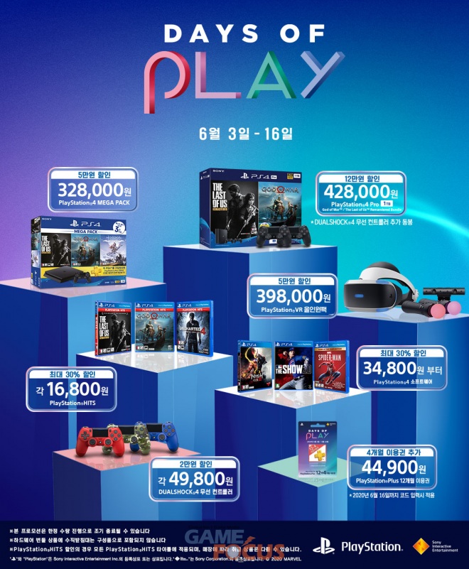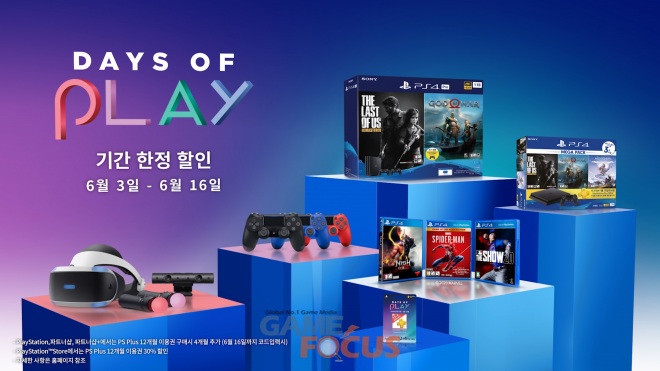 소니인터랙티브엔터테인먼트코리아(이하 SIEK, 대표 안도 테츠야)가 2020년 6월 3일(수)부터 2020년 6월 16일(화)까지 2주 동안 PlayStation 하드웨어, 주변기기, 소프트웨어 및 네트워크 서비스 전반에 걸쳐 특별한 할인을 제공하는 'Days of Play' 세일을 진행한다.