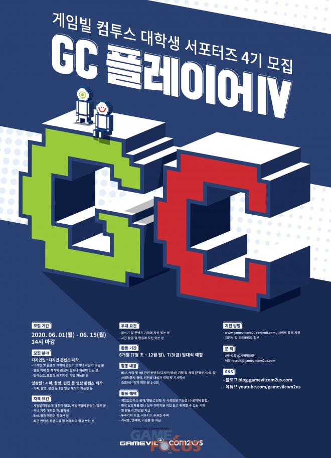 게임빌-컴투스(대표 송병준)는 1일, 대학생 서포터즈인 ‘GC 플레이어’ 4기를 모집한다고 밝혔다.
