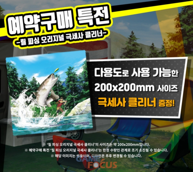 단 예약구매 특전인 '릴 피싱 오리지널 극세사 클리너'는 한정 수량인 관계로 조기 소진될 수 있다. 또한 해당 이미지는 샘플이며, 디자인은 추후 변경될 수 있다.