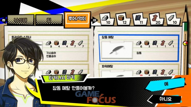 게임에서 플레이어는 낚시 또는 낚시 도구와 간식을 만드는 활동 등을 통해 경험치를 얻게 되고, 낚시와 쇼핑 등으로 획득한 재료를 사용하여 다양한 낚시 도구와 캠핑 요리를 제작할 수 있다. 또한 캐릭터의 '퍽(능력)'을 개방하면 더욱 많은 도구와 간식, 그리고 낚시에 도움이 되는 능력을 추가로 얻게 되어 더 어려운 퀘스트를 클리어할 수 있게 된다.