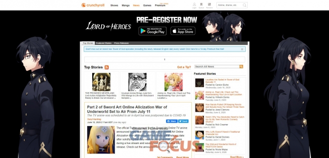 현재, 로드 오브 히어로즈의 글로벌 사전 예약은 미국 유명 애니메이션 콘텐츠 전문 기업 '크런치롤(Crunchyroll)' 공식 홈페이지를 통해 전세계 이용자들에게 소개되고 있다. 크런치롤 자체 서비스 내 인스트림 비디오 광고로 송출되고 있으며, 크런치롤의 소셜 네트워크 서비스(트위터 · 페이스북 · 인스타그램)에도 글로벌 사전 예약 내용이 소개되었다.