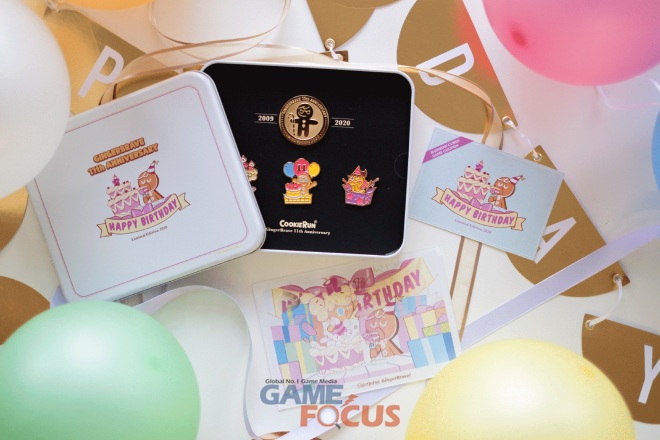 먼저 용감한 쿠키 11주년 배지 컬렉션은 ▲쿠키 캐릭터 배지 3종 ▲왕코인 배지 1종 ▲보는 방향에 따라 이미지가 다르게 보이는 렌티큘러 엽서 ▲게임 쿠폰 등으로 구성되어 있다. 특히 왕코인 뱃지에는 11번째 생일을 뜻하는 숫자 11이 새겨져 있어 한정판의 가치를 높였다.