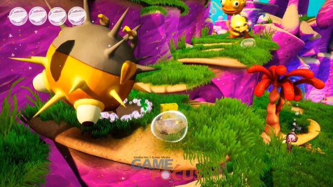 팬티 번지 점프나 강력한 거품을 사용해 엄청난 수의 로봇으로부터 비키니 시티를 구원하라. 혼자서는 물론 멀티 플레이를 통해 힘을 합쳐 전투를 벌일 수도 있다. 악당 플랑크톤에게 범죄의 대가는 집게사장보다 무섭다는 것을 가르쳐 주어야 한다.