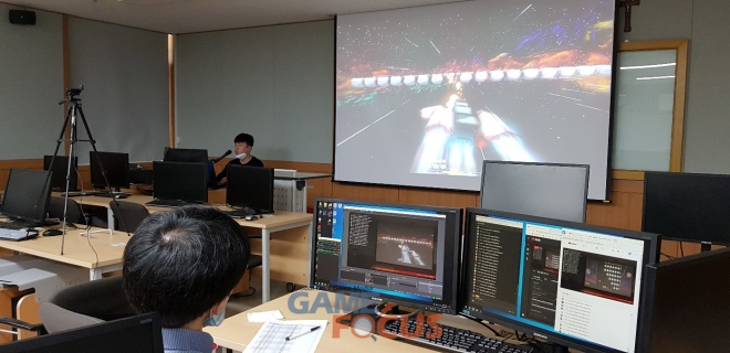 이에 지난 한 한기 동안 개발에 매진한 17개팀의 팀장들이 자신들이 개발한 게임을 온라인 상에서 교수진과 학생들에게 발표하는 시간을 갖게 되었다. 발표를 담당한 팀장은 인터넷 방송환경을 갖춘 교내 강의실에서 유튜브를 통해 발표를 진행하였고 수업이 겹치는 학생들을 제외한 전교생은 방송을 시청하며 카카오톡 오픈 채팅방을 통해 의견을 교환하였다.