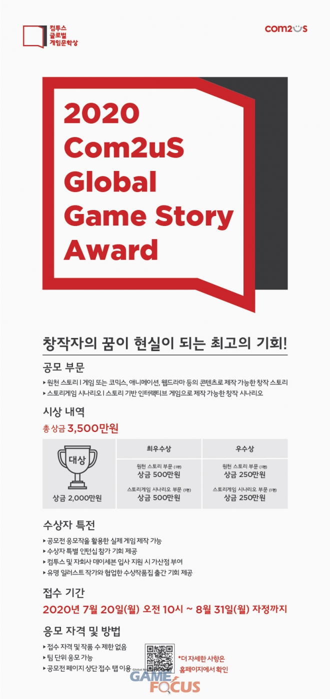 모바일 게임 기업 컴투스(대표 송병준)는 25일, '컴투스 글로벌 게임문학상 2020'의 공식 홈페이지를 오픈하고 관련 정보를 안내했다.