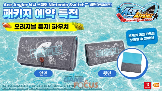 ‘Ace Angler 낚시 스피릿 Nintendo Switch 버전'(한국어판) 패키지 버전의 예약 판매가 7월 7일부터 시작된다. 예약 특전으로는 Nintendo Switch 본체와 게임 카드를 보관할 수 있는 오리지널 특제 파우치를 제공한다.