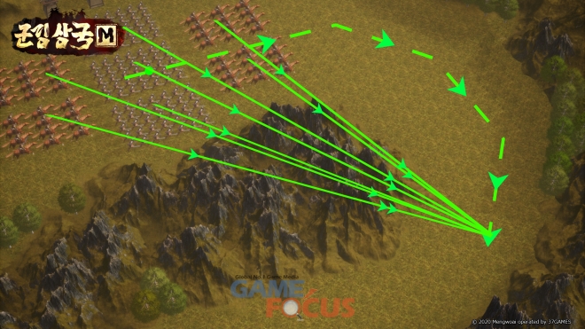 병법에는 ‘인지제의' (각지의 구체적인 실정에 맞게 적절한 대책을 세우다.)라는 말이 있다. 군림삼국M에서는 역사속 전쟁터를 완벽 재현하여 유저들이 지형지물을 활용할 수 있게 설계했다. 일반적인 SLG와 다르게 산, 항구, 잔도 등 실존하는 지형이 있으며 행군 루트에 산이 있으면 넘어가거나 돌아가야 하고 강이 있으면 배를 타고 넘어가야한다. 이런 지형 시스템이 있어 ‘매복’ 등 다양한 전술을 사용할 수 있으며 언제나 지형지물을 이용하여 전세를 역전시킬 수 있다.