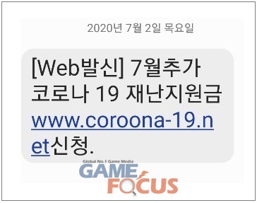 이 밖에도 행정안전부를 사칭한 '2020 긴급재난지원금 신청', '7월 추가 코로나 19 재난 지원금' 내용의 스미싱 공격도 유포되고 있다.