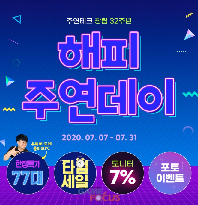 주연테크 유통사업본부 허환석 이사는 "7월 7일 32주년을 맞아 IT유튜버와 콜라보 특가 PC 77대를 한정 판매하고 매주 수요일 모니터를 반값 할인하는 등 다양한 이벤트를 준비했다”며 “매 월 특가 PC 등 프로모션을 계속 진행할 예정이니 많은 관심 부탁드린다”라고 밝혔다.