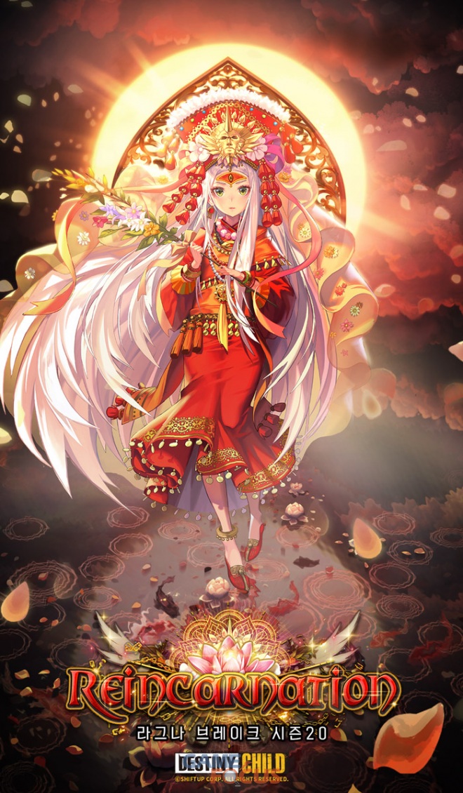'Reincarnation(환생)'은 데스티니 차일드 정규 레이드 '라그나 브레이크'의 20번째 시즌으로, 네팔을 배경으로 쿠마리로 환생한 아라한의 이야기를 담고 있다. 아라한을 지키려는 카라라트리, 니르티와 기억을 잃은 주인공 미트라가 등장해 '유니버스'를 둘러싼 새로운 이야기를 예고했다.