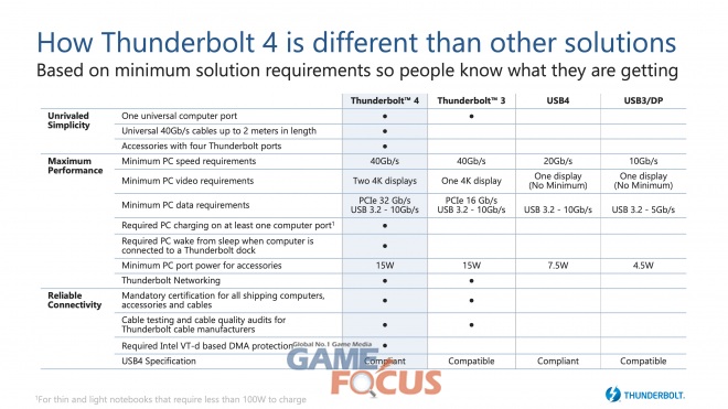 인텔이 차세대 범용 케이블 커넥티비티 솔루션인 썬더볼트 4(Thunderbolt 4)의 최소 성능 요구사항 증가, 기능 확장 및 USB4 사양 컴플라이언스 등 새로운 세부 정보를 공개했다.