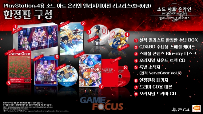 '소드 아트 온라인 앨리시제이션 리코리스'(한국어 번역판)는 PlayStation4, Xbox One(디지털) 버전으로 오늘(2020년 7월 9일) 발매되었으며, STEAM(디지털) 버전으로는 내일(7월 10일) 발매된다. 본 작품은 전국 온라인 및 오프라인 상점에서 구입할 수 있다.