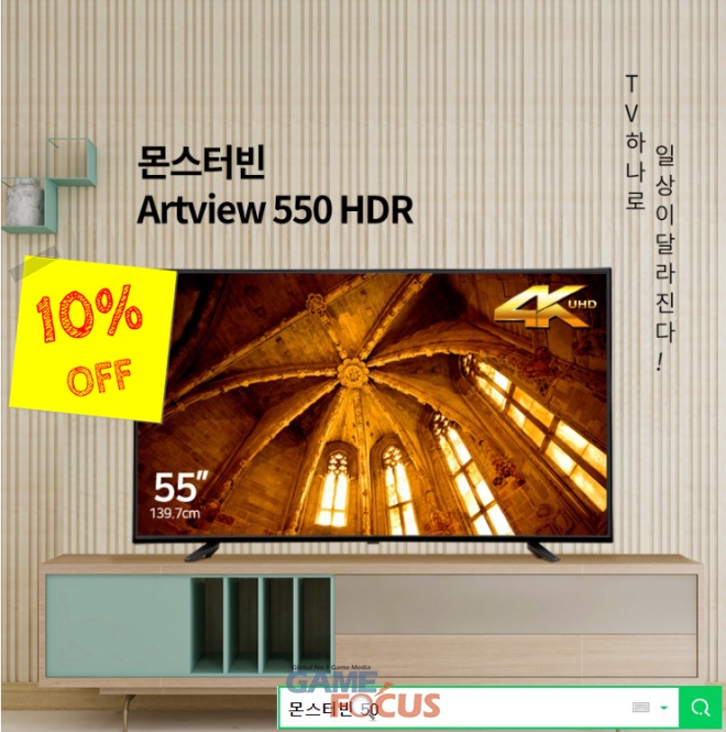 이와 관련하여 행사 관계자는 “몬스터빈 500HDR은 뛰어난 화질을 제공해 방, 거실 등 어느 공간에서도 사용할 수 있는 제품이다”라며, “가격대비 화면의 크기가 매우 우수한 편으로 현재 시장의 50인치대 TV가 모든 디스플레이 기기 중에서 가장 인치당 가격이 저렴하여 가격경쟁력이 좋은 제품을 행사기간 동안 구입할 수 있는 좋은 기회”라고 말했다.