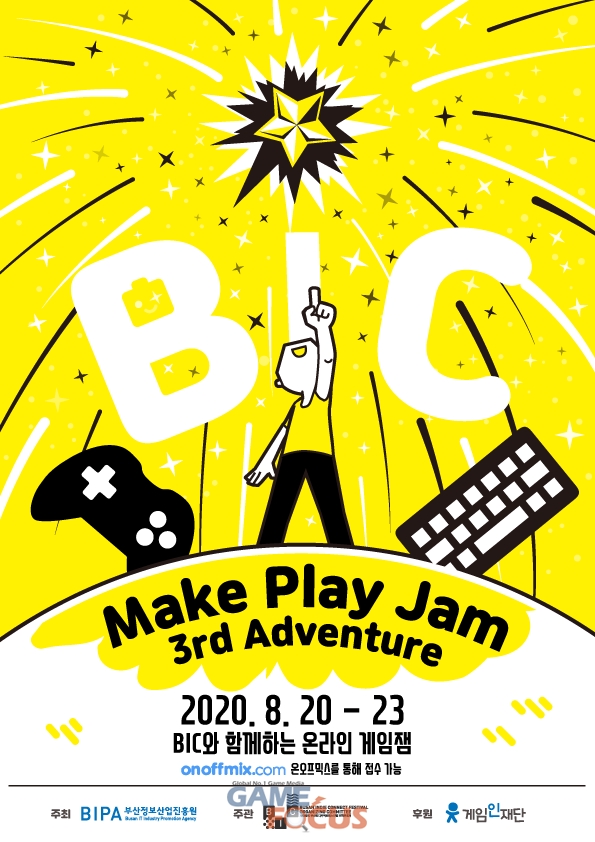 부산광역시(시장 권한대행 변성완)와 부산정보산업진흥원(원장 이인숙), 사단법인 부산인디커넥트페스티벌조직위원회(조직위원장 서태건)는 'BIC 온라인 게임잼 2020(Make Play Jam_3rd Adventure)'의 참가자 모집을 15일 시작한다고 밝혔다.