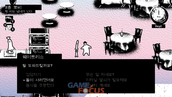 그런데 다음날, 신비한 돌이 감쪽같이 사라져버렸다. 어지렵혀진 방을 본 당신은 어느 누군가가 신비한 돌을 훔쳐갔음을 직감하고 호텔 구석구석을 조사하며 돌의 행방을 쫓기 시작한다.