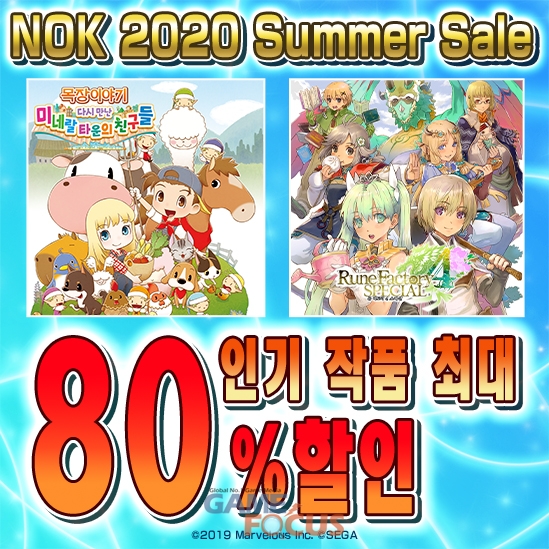 SEGA SUMMER SALE, 총 12타이틀의 세일을 실시. '목장이야기 다시 만난 미네랄 타운의 친구들'과 '룬 팩토리 4 스페셜'은 새로운 세일 대상 타이틀이므로, 이 기회를 놓치지 말자.