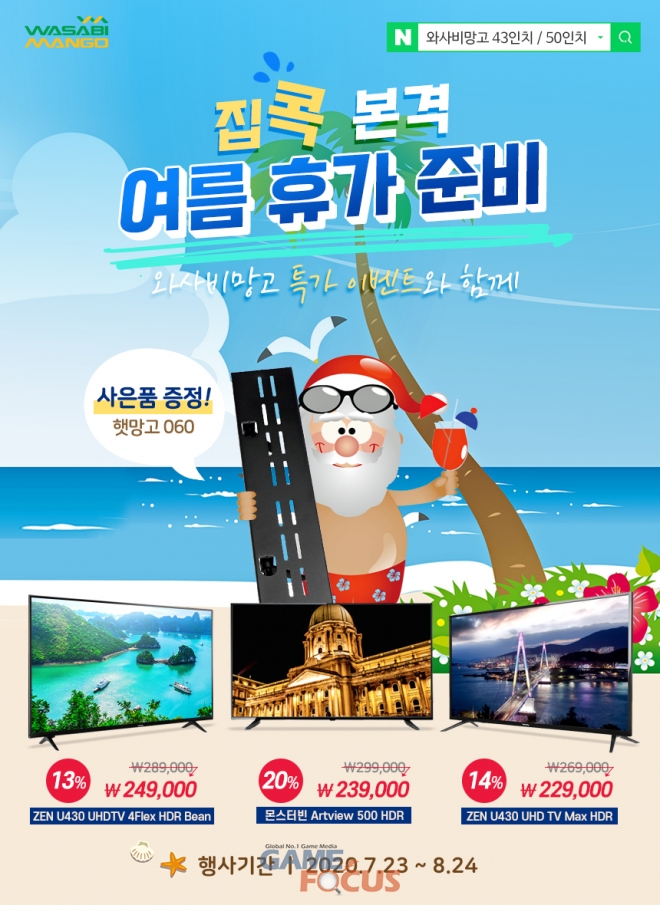 이와 관련하여 관계자는 “여름 휴가기간 동안 휴가지로 못가는 나홀로 가정 고객을 대상으로 행사를 준비했다”라며 “중소형 UHD TV 제품으로 구성한 이번 행사를 활용하면 와사비망고의 UHD TV상품을 부담없는 가격에 구매할 수 있는 기회가 될 것”이라고 말했다.
