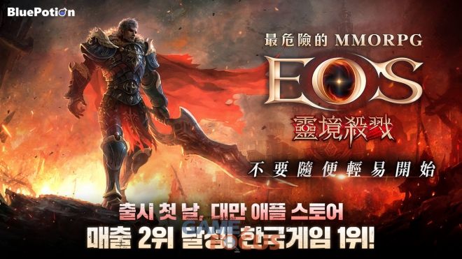 블루포션게임즈(대표 신현근)가 직접 개발하고 서비스하는 모바일 정통 MMORPG '에오스 레드'의 첫 번째 해외 진출 지역인 대만, 홍콩, 마카오 앱스토어에서 매출 순위 2위를 달성했다고 밝혔다.