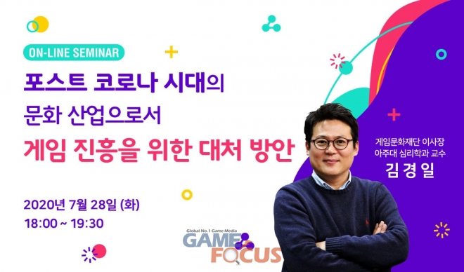 (재)게임문화재단(이사장 김경일)이 7월 28일 오후 6시 '포스트 코로나 시대의 문화산업으로서 게임 진흥을 위한 대처 방안'을 주제로 온라인 세미나를 개최한다.