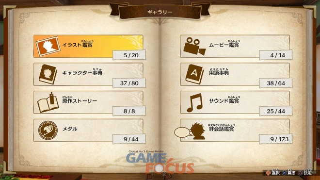 책장을 조사하면 '갤러리'를 이용할 수 있다. '캐릭터 사전'에서 등장하는 인물의 정보를 확인하거나 '원작 스토리'에서 본 작품의 1장에 해당하는 천랑도편까지의 스토리를 복습할 수 있다.