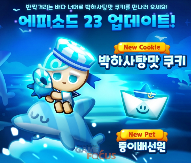 시즌 2 이후 처음으로 진행한 이번 업데이트로 박하사탕맛 쿠키의 에피소드인 ‘머나먼 바닷가'가 추가됐다. 박하사탕맛 쿠키는 바다와 파도 소리를 사랑하는 쿠키로, 스킬을 발동시키면 회전하는 3방향 레이더로 소라고둥 빔을 쏴서 젤리를 터뜨린다. 짝꿍 펫인 종이배 선원은 레벨 시작 시 쿠키 부스터 게이지를 일정량 채워주는 역할을 한다.
