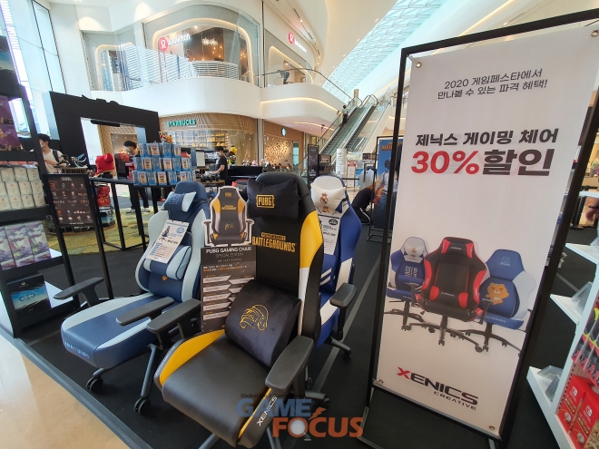 게이밍 기어존에서는 제닉스 게이밍 의자를 직접 체험해 볼 수 있으며 특별 할인 가격에 구매할 수 있다.