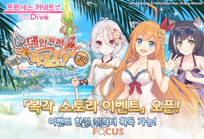 이와 함께, 모바일 애니메이션 RPG '프린세스 커넥트! Re:Dive'에서는 오는 21일(금)까지 복각 스토리 이벤트 '데인저러스 바캉스! 바닷가의 미식가 프린세스'를 진행한다. 이용자는 '미식전'의 멤버인 '페코린느', '콧코로', '캬루'와 '사렌디아 구호원' 멤버인 '사렌'과 '스즈메'를 중심으로 한 스토리를 감상하고 여름 특집 한정 캐릭터 '콧코로(여름)'를 획득할 수 있다.