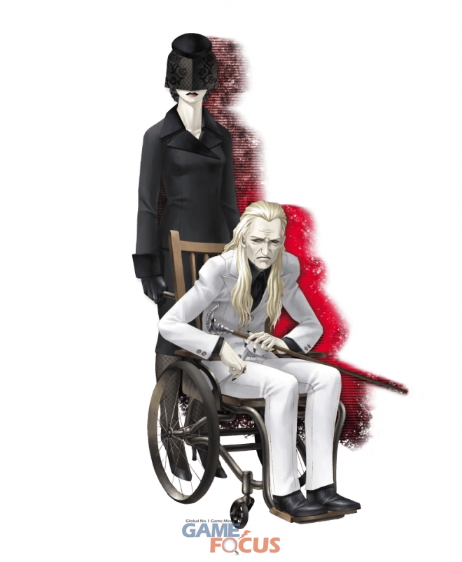 휠체어의 노신사 (CV. Shinichiro Miki)와 상복을 입은 여인 (CV. Suzuko Mimori)