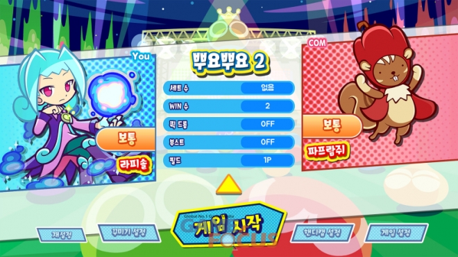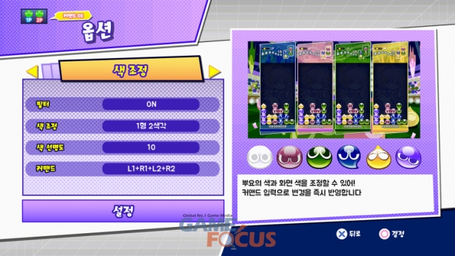 ※단, 설정을 변경해도 '경기 시작/종료 연출', '방해 뿌요 낙하 속도', '퀵 드롭 사용 시'에는 영향을 끼치지 않습니다.