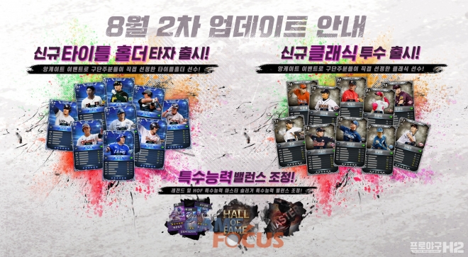 엔씨(NC)는 이 밖에도 ▲선수 앨범 10레벨 추가 ▲라인업 마스터 신규 등급 추가 ▲레전드 등급 특수능력(폭풍질주, 완치된 새가슴 등) 밸런스 조정 ▲일부 HOF 선수(이호준, 백인천, 마해영 등)의 특수능력 밸런스 조정 등의 콘텐츠를 업데이트했다.