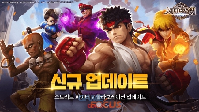모바일게임 기업 컴투스(대표 송병준)가 글로벌 인기작 '서머너즈 워: 천공의 아레나(이하 서머너즈 워)'와 캡콤의 대전 격투게임 '스트리트 파이터 V: 챔피언 에디션'과의 콜라보레이션 업데이트를 실시하고, 콜라보 몬스터 '켄' 지급 등 다양한 이벤트를 진행한다.
