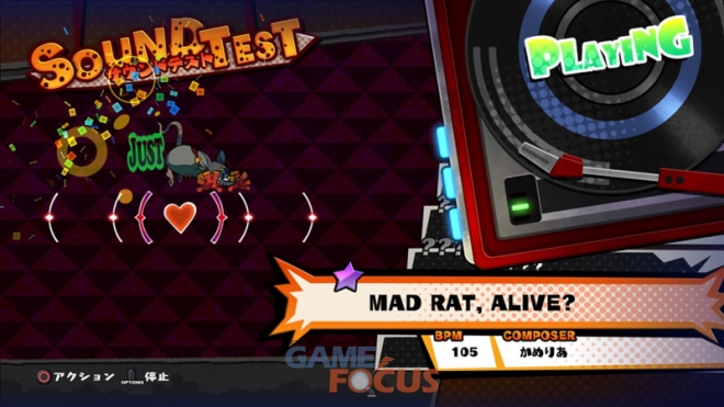 클리어한 스테이지의 악곡을 들을 수도 있다. 호화 아티스트들의 흥겨운 악곡을 천천히 즐겨보자. 매드 래트에게 액션을 시킬 수도 있으니, 어려운 곡은 여기서 연습하자.