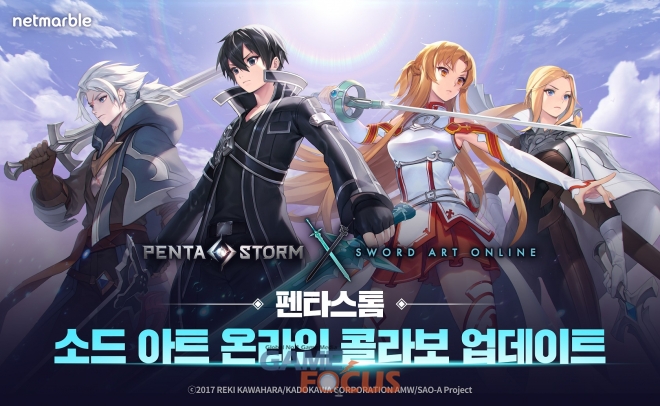 넷마블(대표 권영식, 이승원)이 자사의 모바일 MOBA(진지점령전) '펜타스톰'에서 인기 애니메이션 '소드 아트 온라인'과의 콜라보레이션 업데이트를 실시한다.