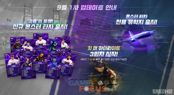 이번 업데이트를 통해 프로야구 H2에 NC 테임즈('15), 롯데 이대호('10), 삼성 이승엽('99) 등 61명의 몬스터 타자가 등장한다. 이용자는 '몬스터 팩'에서 몬스터 등급으로 성장할 수 있는 선수를 획득할 수 있다. '몬스터 증명서' 아이템과 모든 훈련이 EX 등급으로 완료된 동일한 위너스 선수를 사용해 몬스터 등급으로 승급시킬 수 있다.