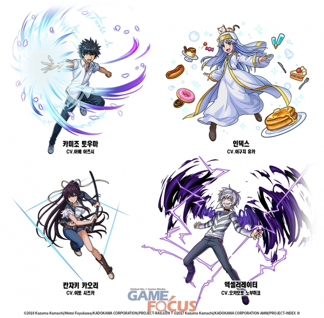 카미조 토우마(CV.아베 아츠시), 인덱스(CV.이구치 유카), 액셀러레이터(CV.오카모토 노부히코), 칸자키 카오리(CV.이토 시즈카)