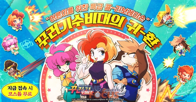 NHN(대표 정우진)이 자사가 서비스하고 로드컴플릿(대표 배정현)이 개발한 모바일 RPG '크루세이더 퀘스트'에서 일본 유명 애니메이션 '꾸러기 수비대'와 두 번째 콜라보레이션 업데이트를 진행한다.